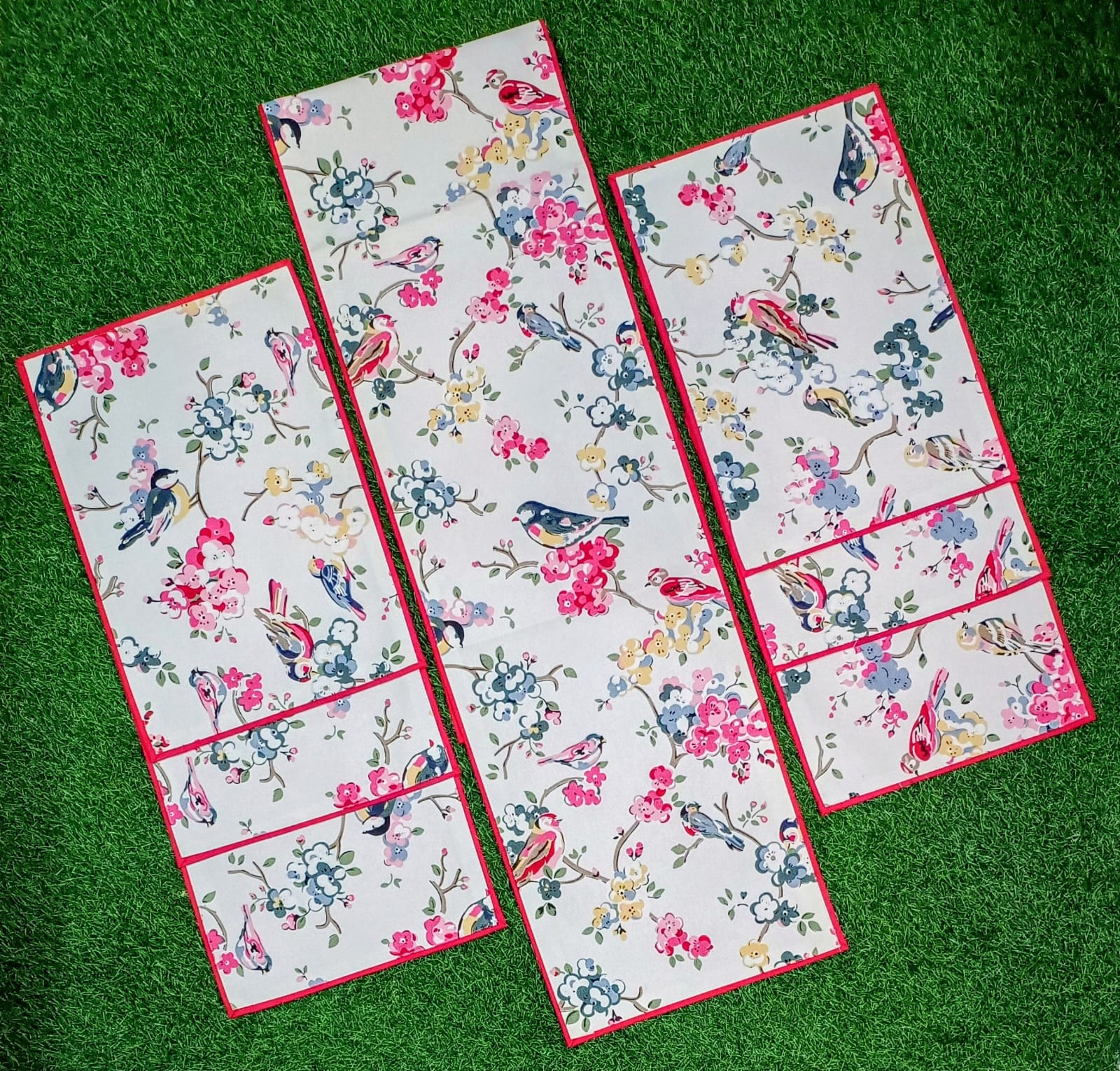 *1pc 6seater 2 layered Runner and 6pc Placemats with matching plain back*