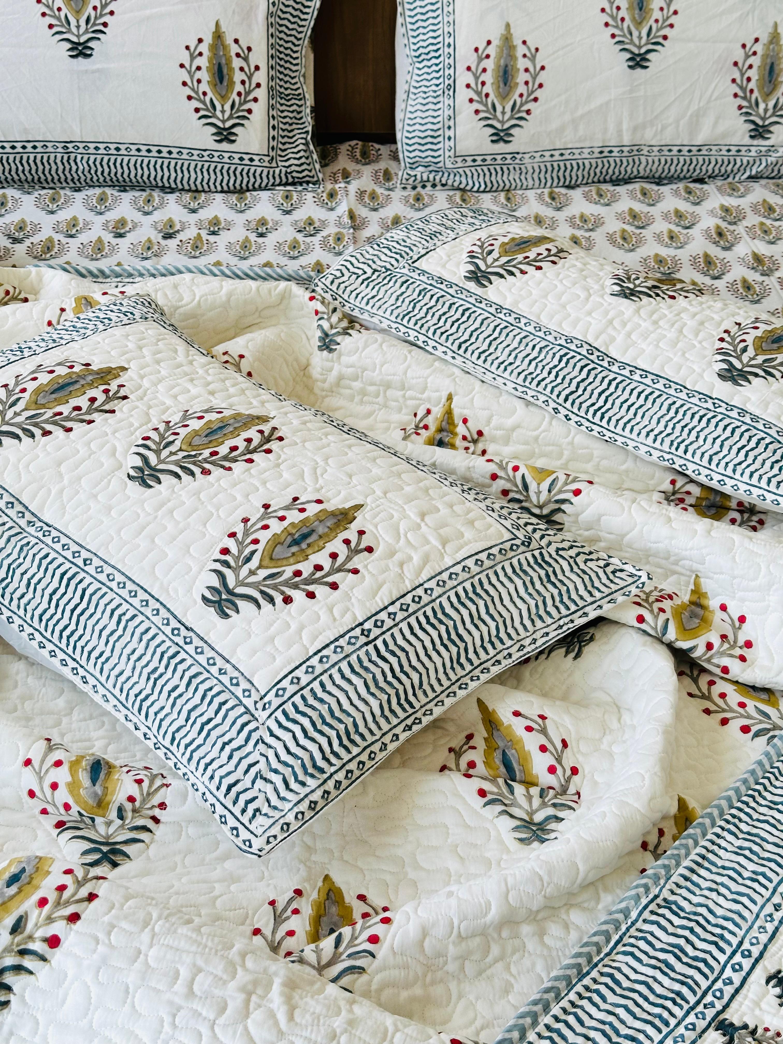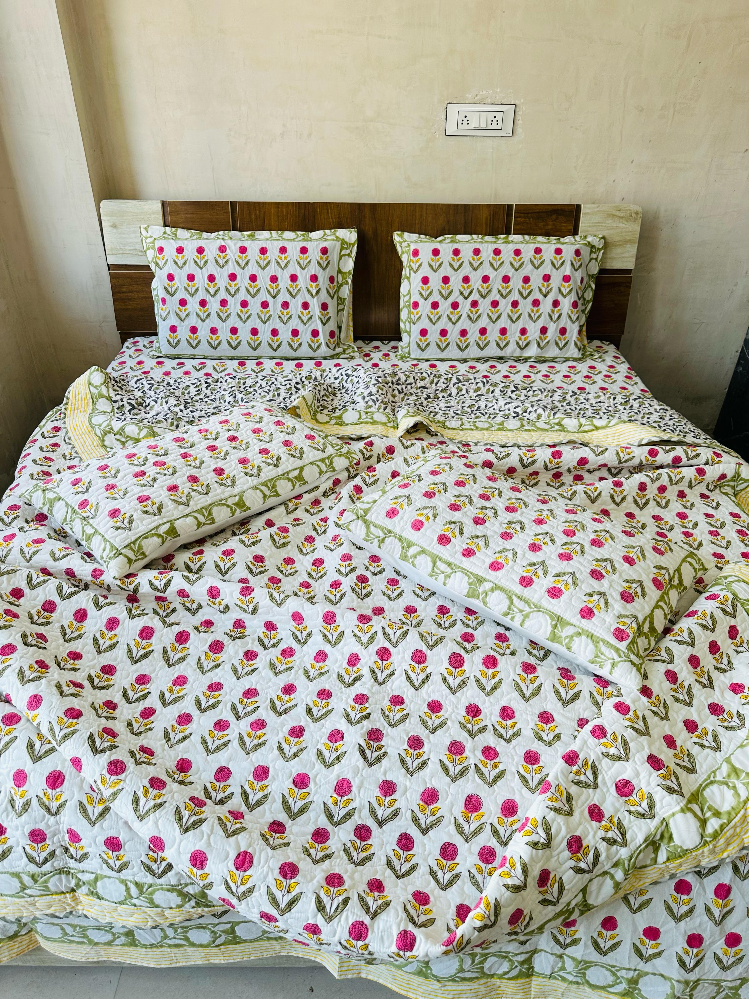 1 Double Quilted Comforter + 2 Quilted Pillow Covers + Bedsheets with 2 Pillow Covers