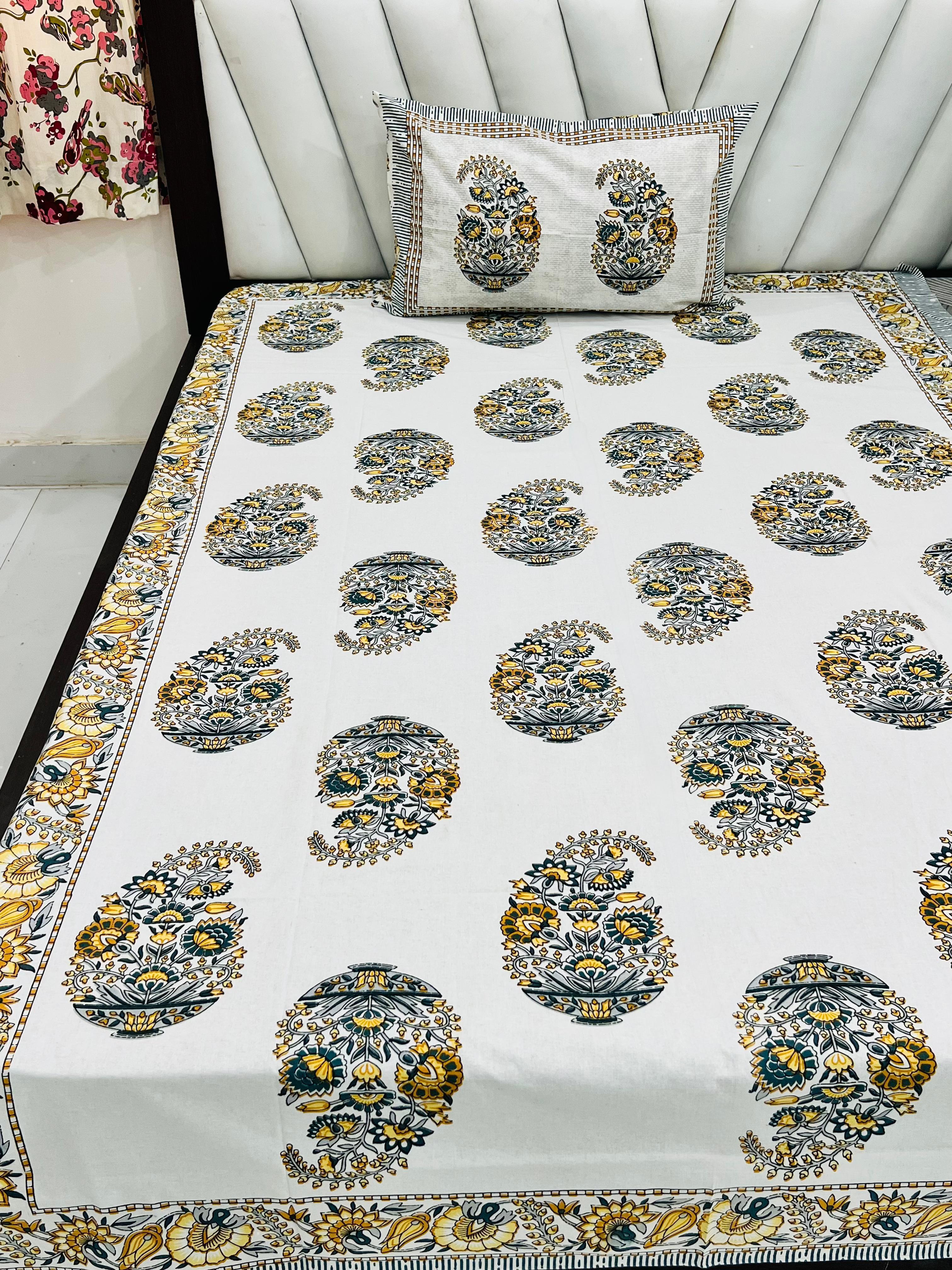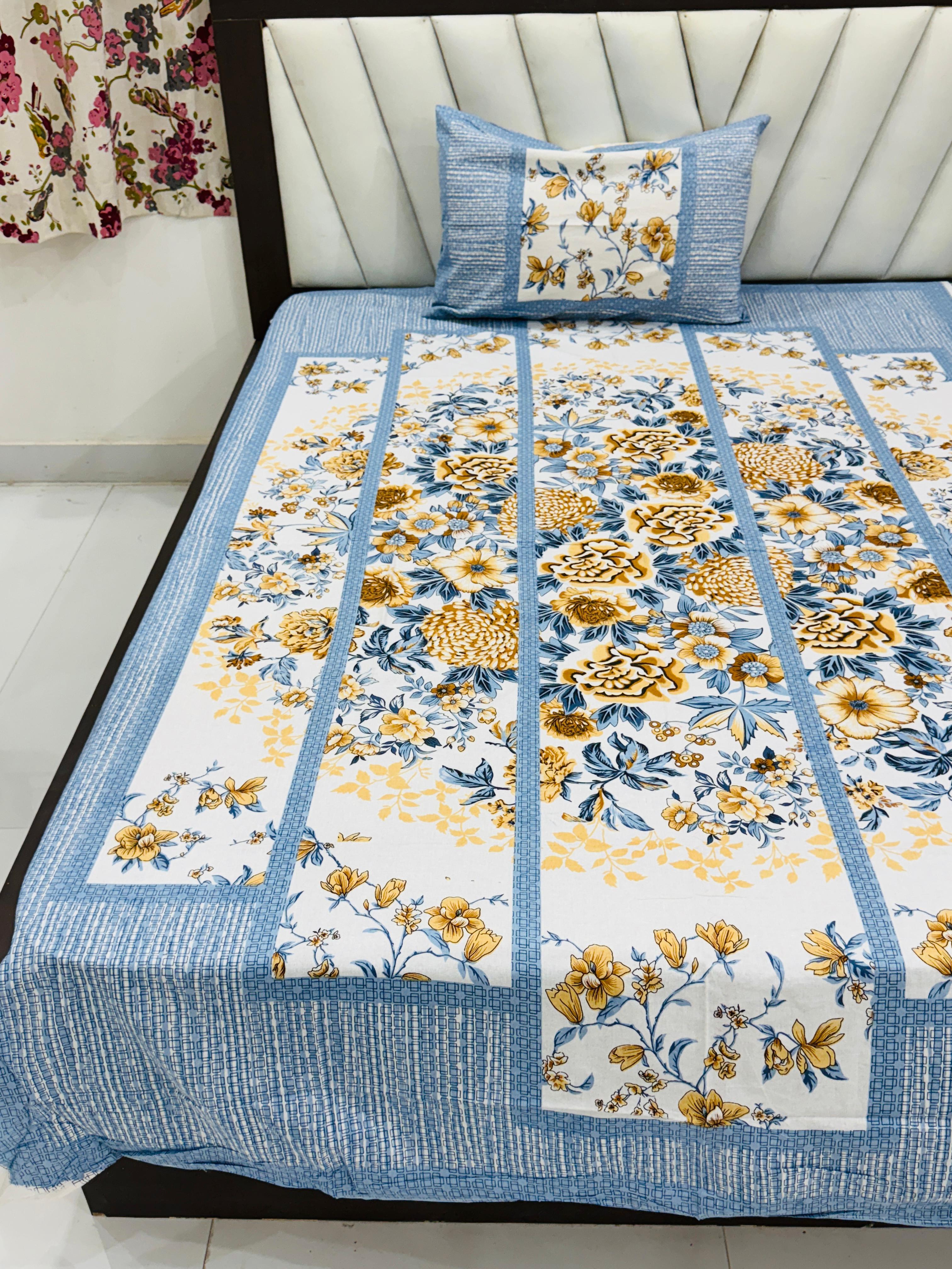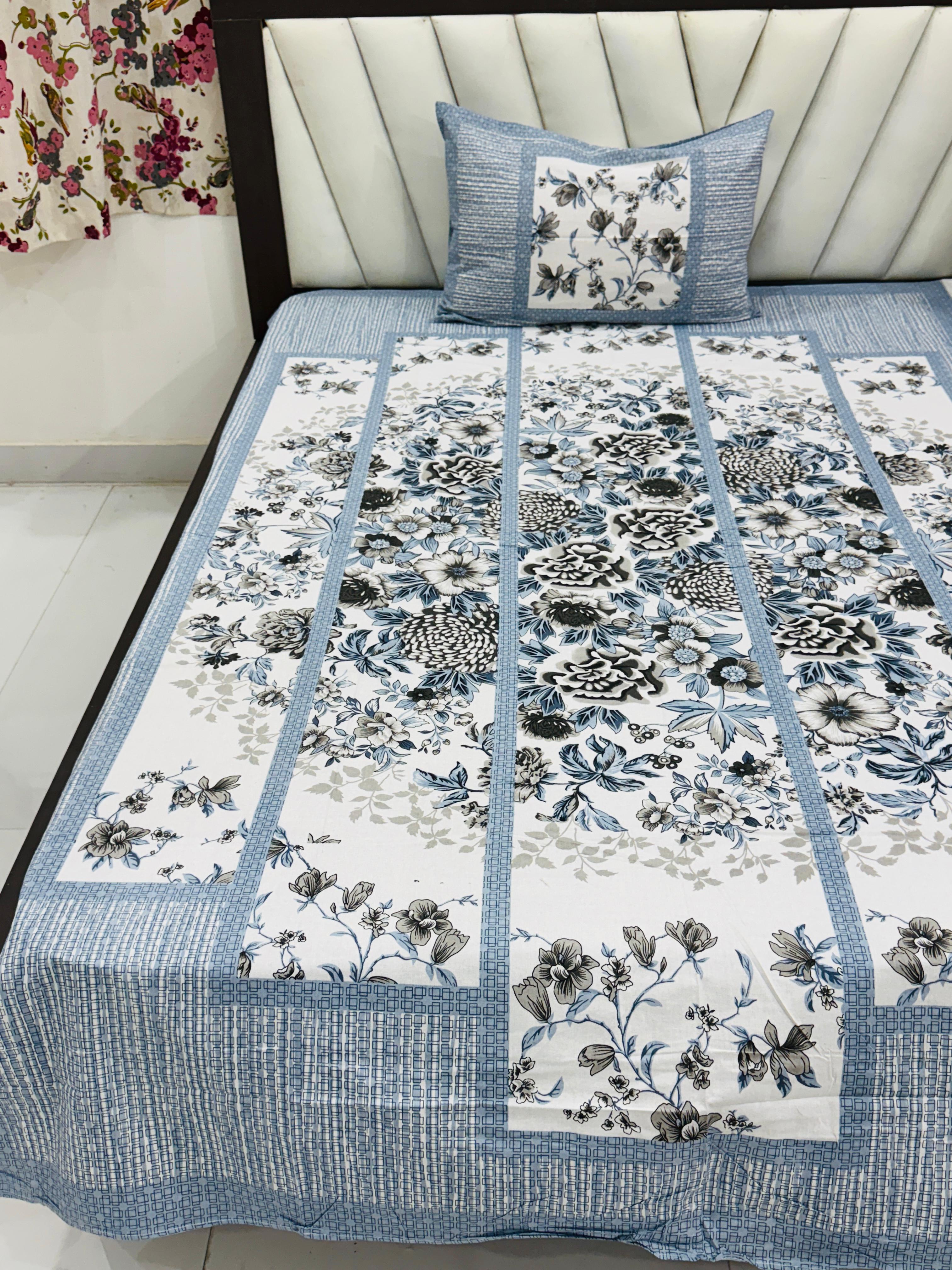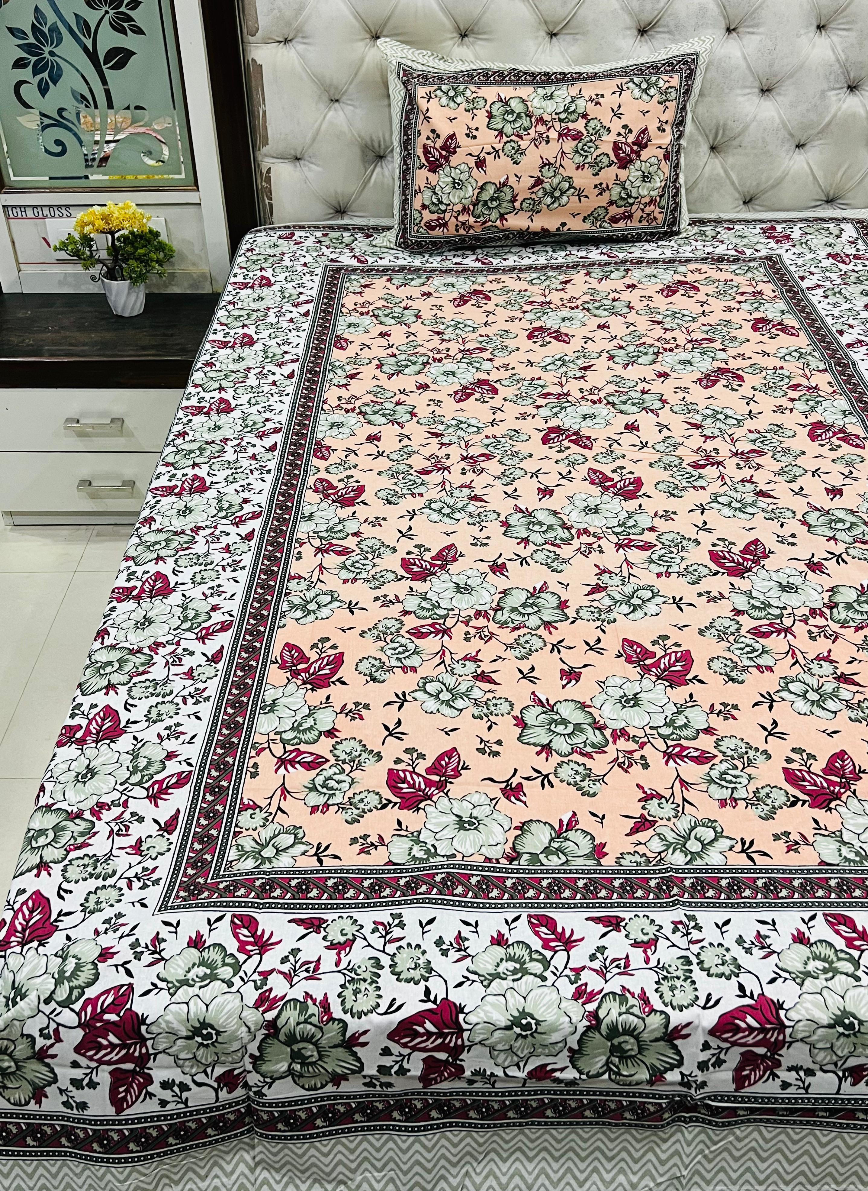 Pure cotton Single bed bedsheet with 1 pillow cover