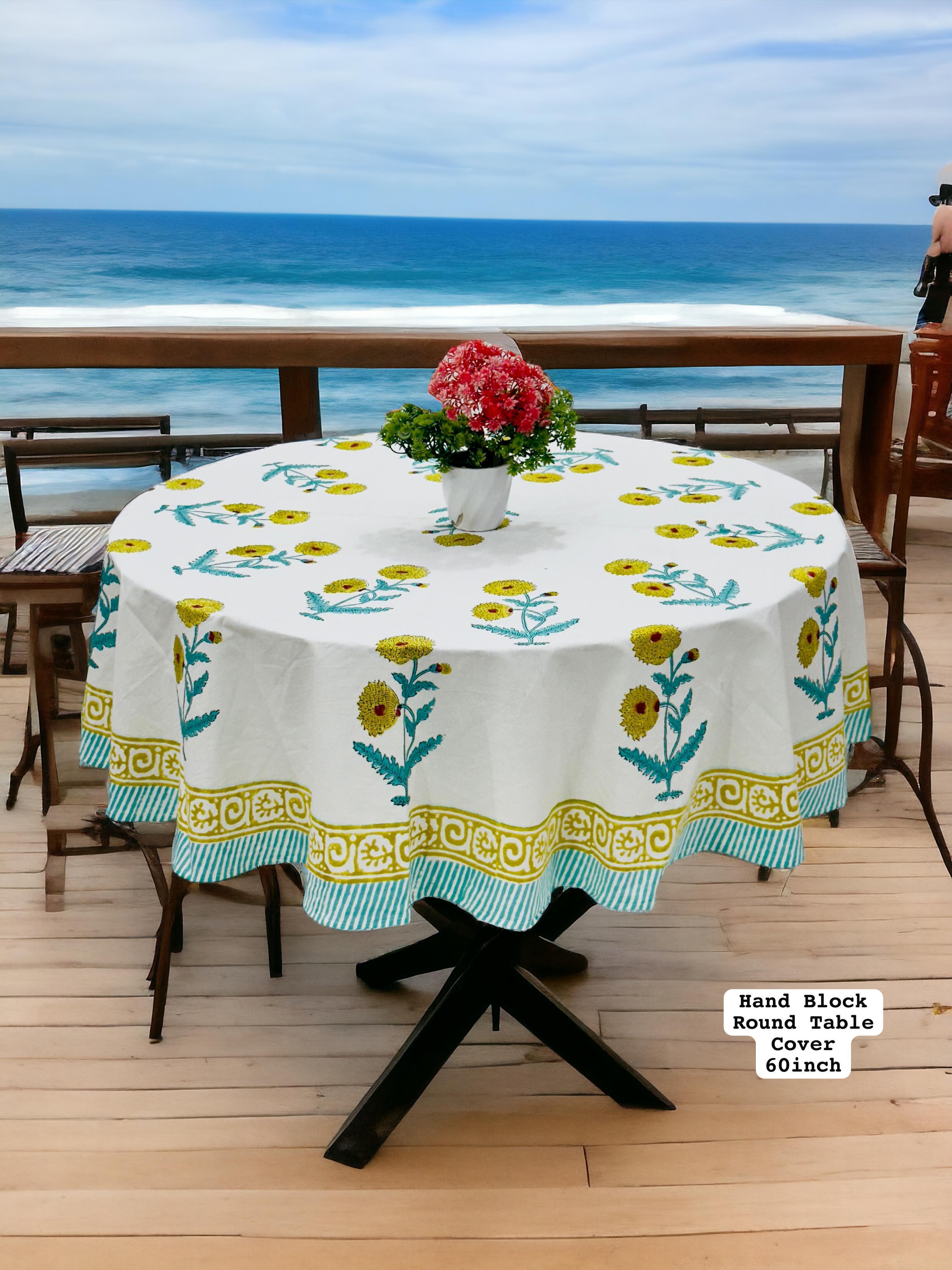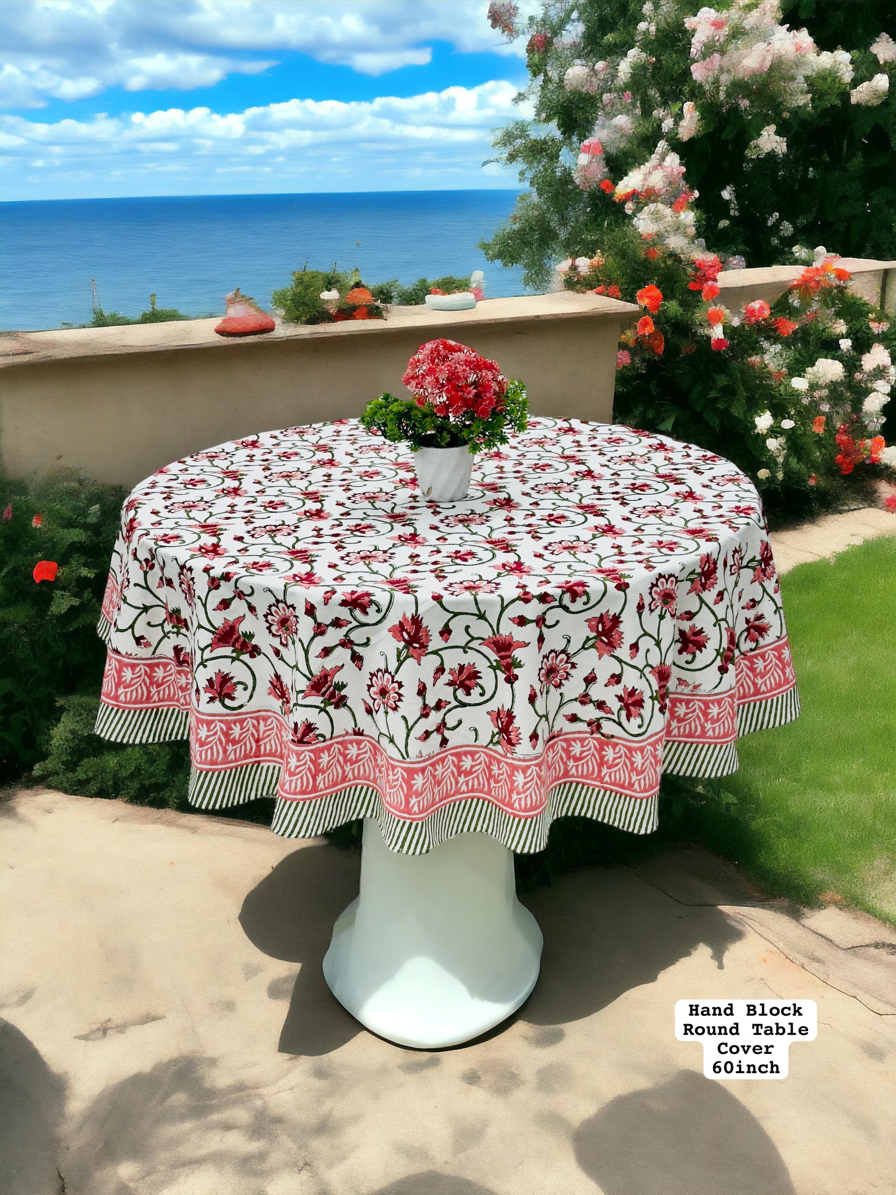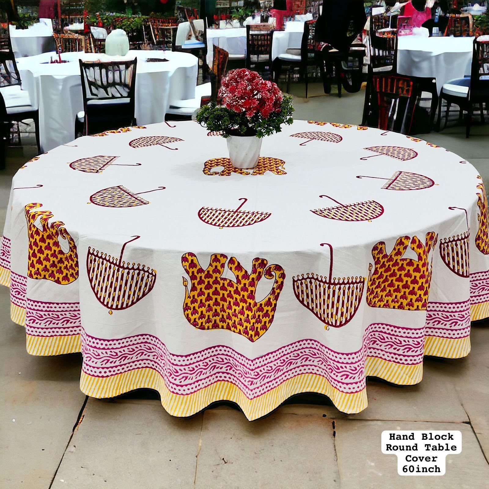 *Premium Hand Block Sanganeri Printed Round Table Cover for 4 Seater*