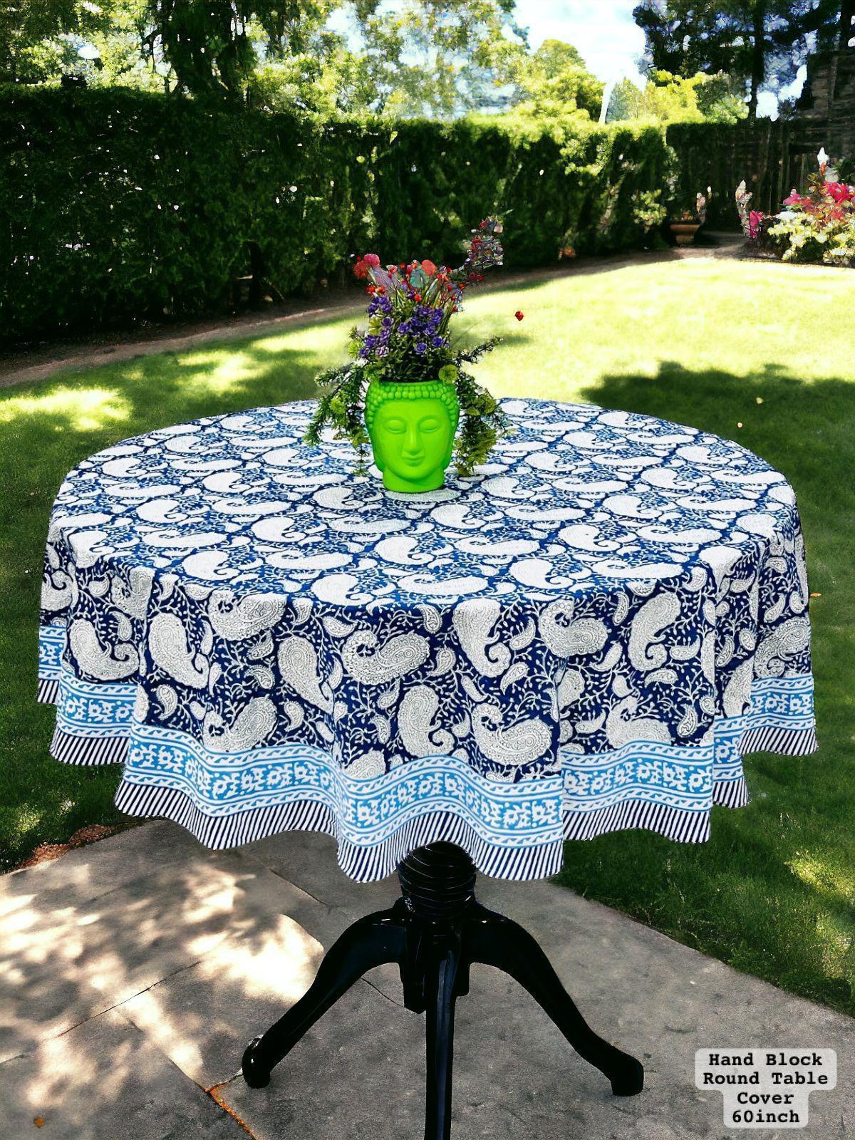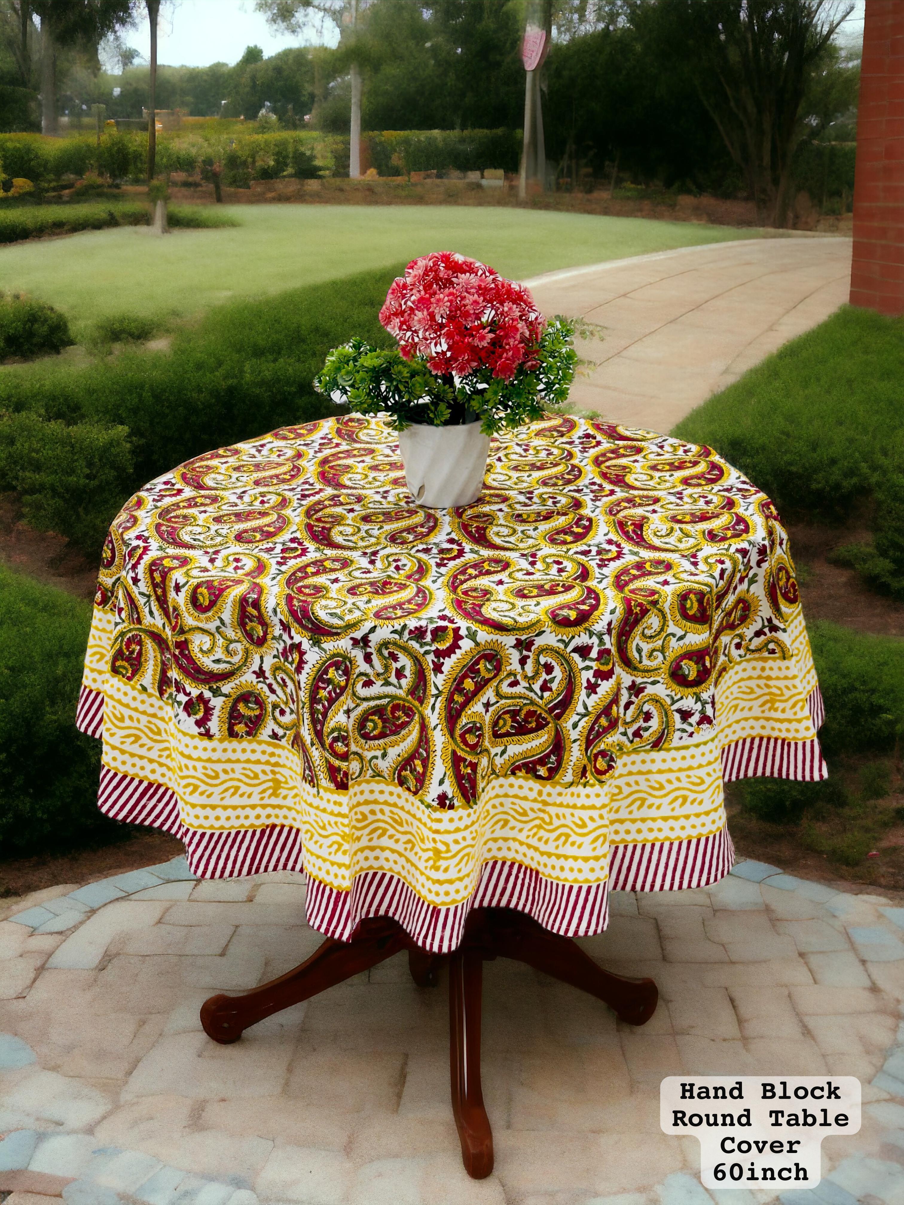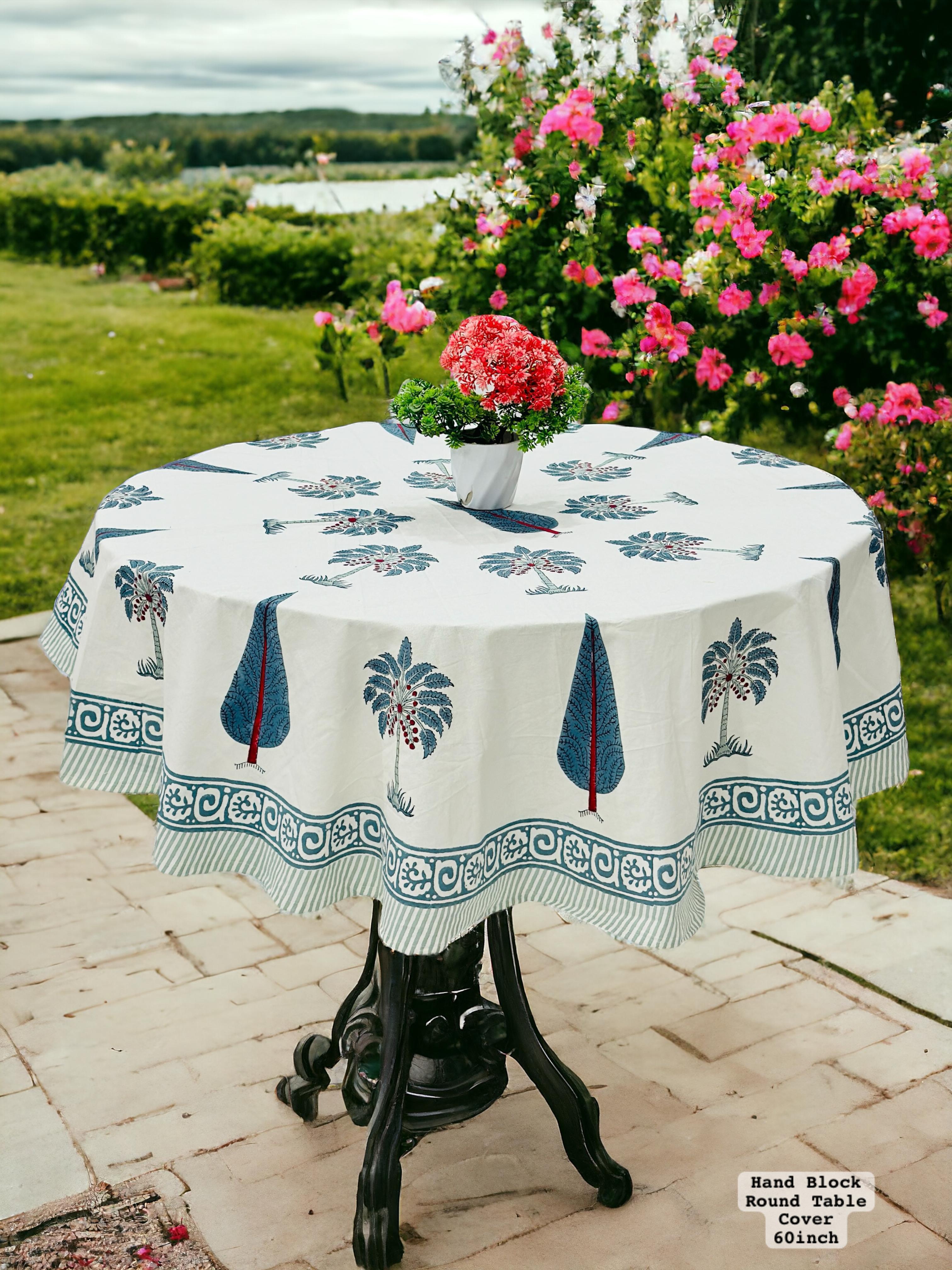 *Premium Hand Block Sanganeri Printed Round Table Cover for 4 Seater*