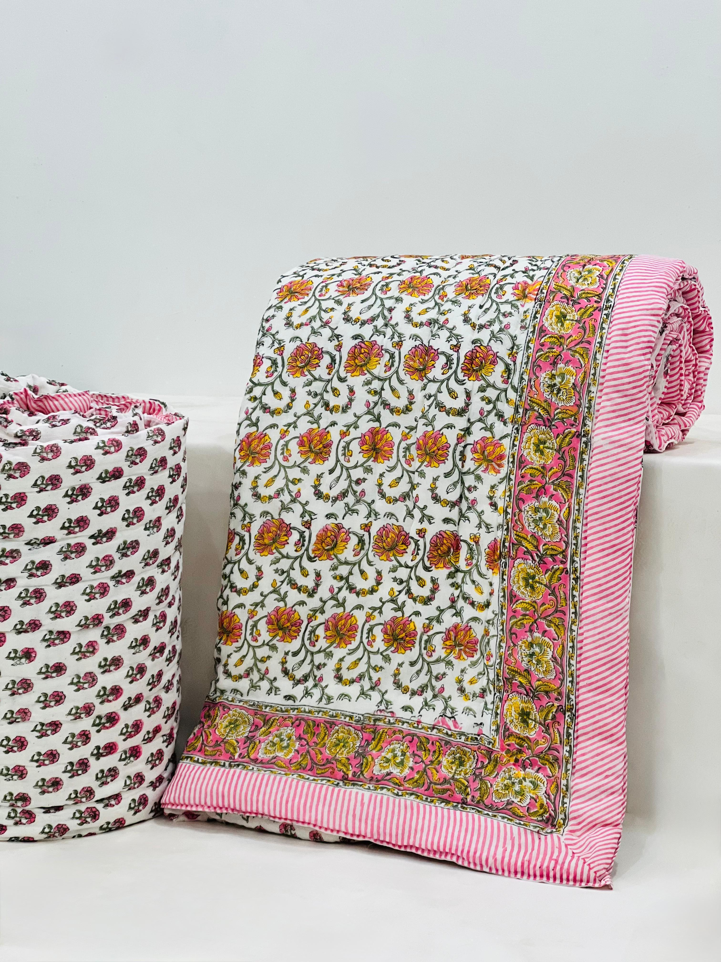 *PREMIUM JAIPURI HAND BLOCK DOUBLE BED HAND QUILT ( RAZAI ) 90X108*